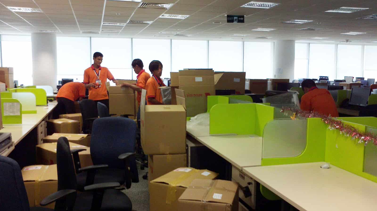 - Bước 1 – Thảo Dỡ: Thực hiện các công đoạn tháo, ráp, bao bọc kỹ các đồ nội thất văn phòng: Bàn ghế, tủ kệ, vách nhôm kính, vách kính cường lực, bàn họp, làm việc cỡ lớn, bảng trắng,… Tháo dỡ hệ thống máy tính, máy in, máy photocopy, máy Fax, máy Scan, mạng internet, mạng điện thoại. Bên cạnh đó, Công ty Dịch vụ Dọn Nhà còn lưu tâm bảo quản những vật trang trí hoặc đồ dùng dễ vỡ của văn phòng.